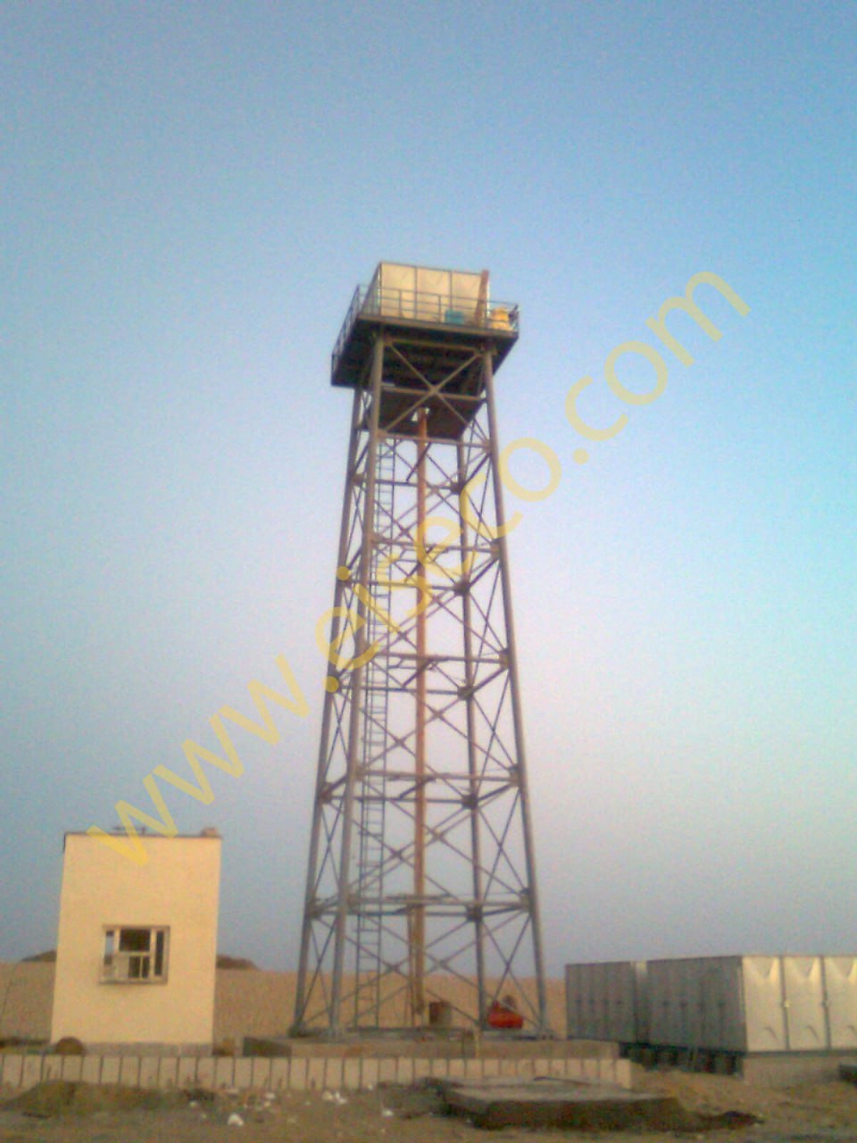 مخزن ذخیره آب شرب 24 متر مکعبي نصب شده روي سکوي فولادي به ارتفاع 30 متر